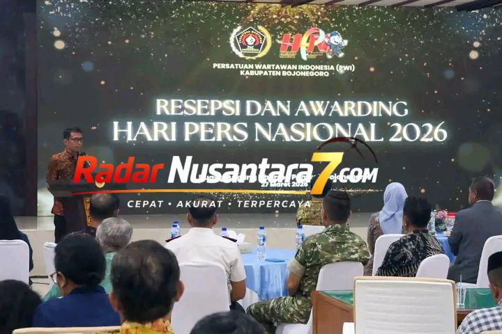 Radar Nusantara7.Com//Bojonegoro, Jumat (27 Maret 2026) – Bupati Bojonegoro, Setyo Wahono, menghadiri kegiatan Resepsi dan Awarding Hari Pers Nasional (HPN) 2026 yang diselenggarakan oleh Persatuan Wartawan Indonesia (PWI) Kabupaten Bojonegoro. Acara berlangsung di Ruang Angling Dharma, Gedung Pemerintah Kabupaten Bojonegoro, pada Jumat malam dengan suasana penuh kebersamaan antara insan pers dan pemerintah daerah.