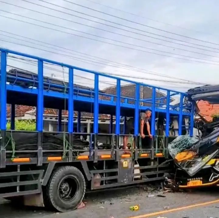 Berdasarkan informasi yang dihimpun dari sumber Humas, insiden bermula saat bus diduga berusaha menyalip kendaraan di depannya. Namun, upaya tersebut diduga tidak berjalan mulus hingga akhirnya bus berpapasan langsung dengan truk bermuatan sepeda motor yang melaju dari arah berlawanan. Tabrakan pun tak terhindarkan.