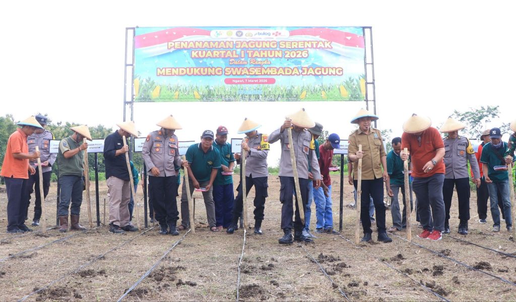 Kapolres Ngawi AKBP Prayoga Angga Widyatama, S.I.K., M.Si. mengatakan bahwa kegiatan penanaman jagung serentak ini merupakan bentuk dukungan Polri terhadap program pemerintah dalam memperkuat ketahanan pangan nasional.