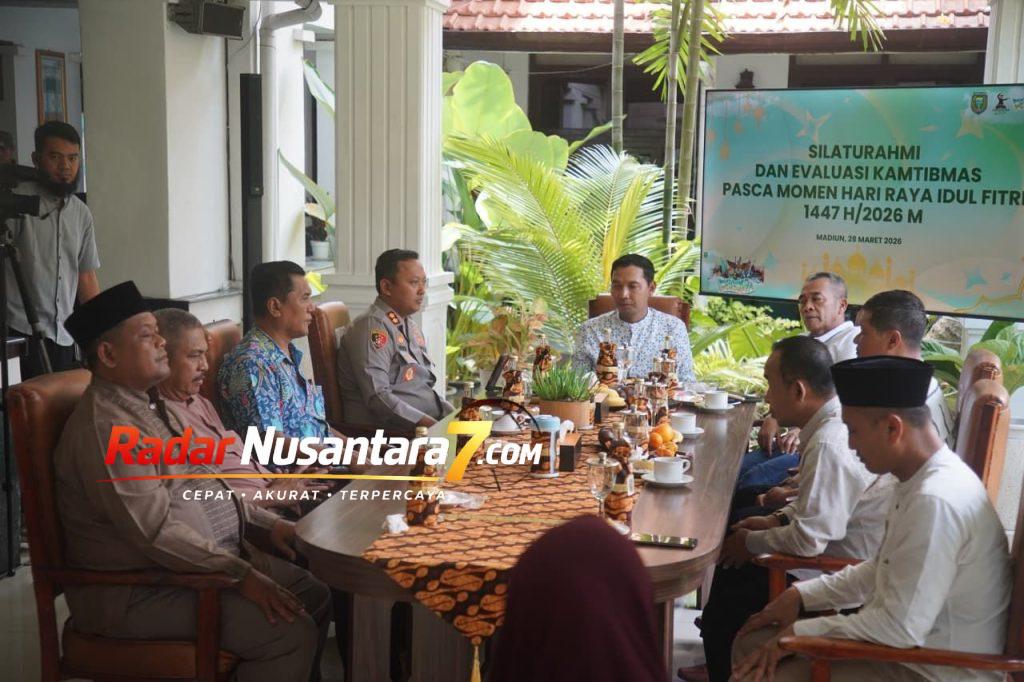 Radar Nusantara7.Com//Kota Madiun – Pemerintah Kota Madiun bersama jajaran Forkopimda menggelar kegiatan Silaturahmi dan Evaluasi Kamtibmas pasca Hari Raya Idul Fitri 1447 H / 2026 M, Sabtu (28/3/2026), bertempat di Balai Kota Madiun.