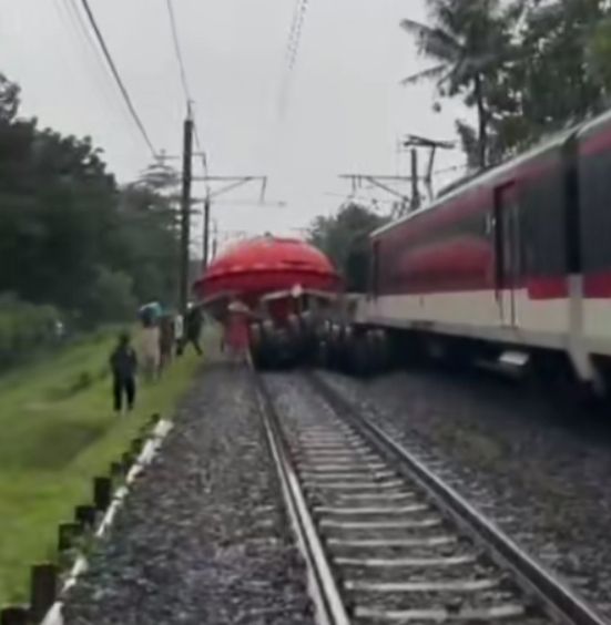 Dalam video yang beredar di media sosial, tampak bagian depan kereta mengalami kerusakan cukup parah. Sementara itu, truk berwarna oranye terlihat ringsek di lokasi kejadian. Sejumlah penumpang tampak turun dari gerbong untuk menyelamatkan diri setelah rangkaian berhenti.