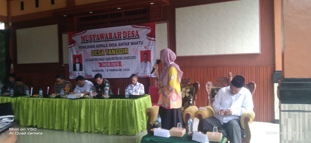 Ketua Panitia Musdes Pemilihan Kades PAW Desa Jaizatul Qoiriyah mengatakan bahwa pada Musdes Penetapan Pemenang Pilkades PAW Hari ini akan kita sepakati bersama dengan sistim musyawarah yang akan di ikuti oleh sebanyak 101 masyarakat dari berbagai unsur Yang Kami Undang dan Memiliki hak bermusyawarah menetapkan 2 Calon Yang akan di pilih untuk Memimpin Desa Tanggir di periode 2026 – 2028 yaitu nomor urut 1 Gina Prasetyowati Dan nomor urut 2 Woto.